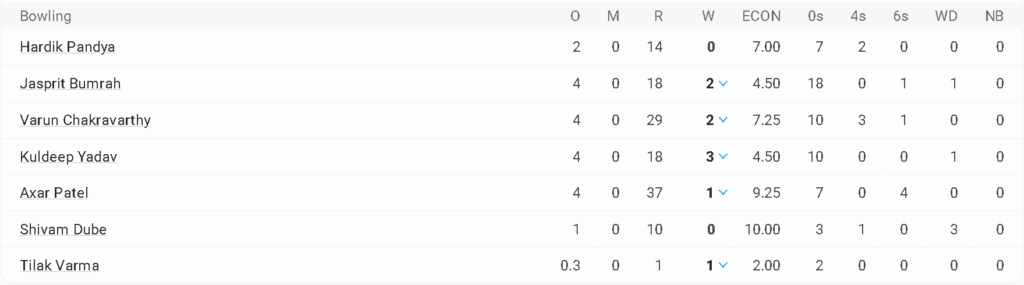 Kuldeep Yadav’s brilliance was complemented by India’s all-round bowling effort. Axar Patel chipped in with key breakthroughs, using his accuracy to frustrate the batters, while Varun Chakaravarthy also struck at crucial moments. Together, the trio ensured Bangladesh never found a partnership to challenge India’s grip on the game.