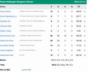 Smriti Mandhana the losing RCB -W skipper said : Absolutely brilliant innings from Richa Ghosh. I mean, it was just a treat to watch. Nadine as well, a good contribution. But yeah, I think, of course, these sort of innings, when you lose, wouldn’t go noticed. But I think it’s one of the best innings I’ve seen. Nat is definitely a world-class player. She can hit one ball at three different places, which again makes life very difficult. Credit to her.