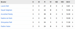 There was a fightback through Richa Ghosh, Nadine de Klerk and Arundhati Reddy, with Richa battling till the end and scoring 35 runs in the last two overs, but the task proved far too steep. After winning their first five games, RCB have now suffered back-to-back losses and will need to regroup quickly to ensure their final league match doesn’t make it three defeats on the bounce.